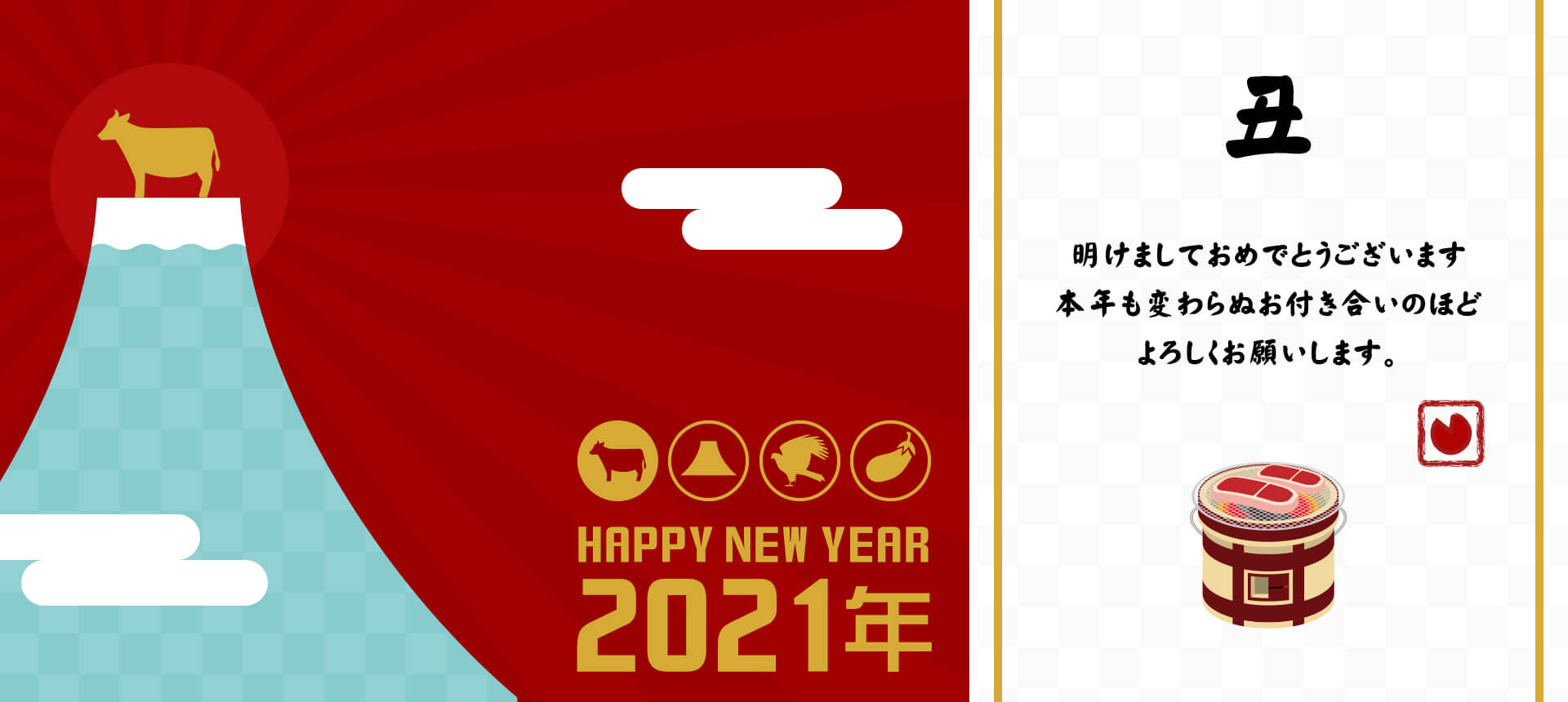 コロナ過における仕事の余暇(学習時間)を有効に使い作成した創作サイト。1980年代のバブルを彷彿とさせる富士山型のお立ち台とその頂で荒ぶる丑。その背景では初日の出がミラーボールのごとく輝きを放ち舞台を盛り上げるのである。アイコンを押下すると、鷹やなすびも舞台へ登り陽気に踊り出す...と言った遊び心を詰め込んだ謹賀新年サイトである。時間経過で食肉へ加工された丑の怨念が徐々に可視化されるギミックを搭載した。